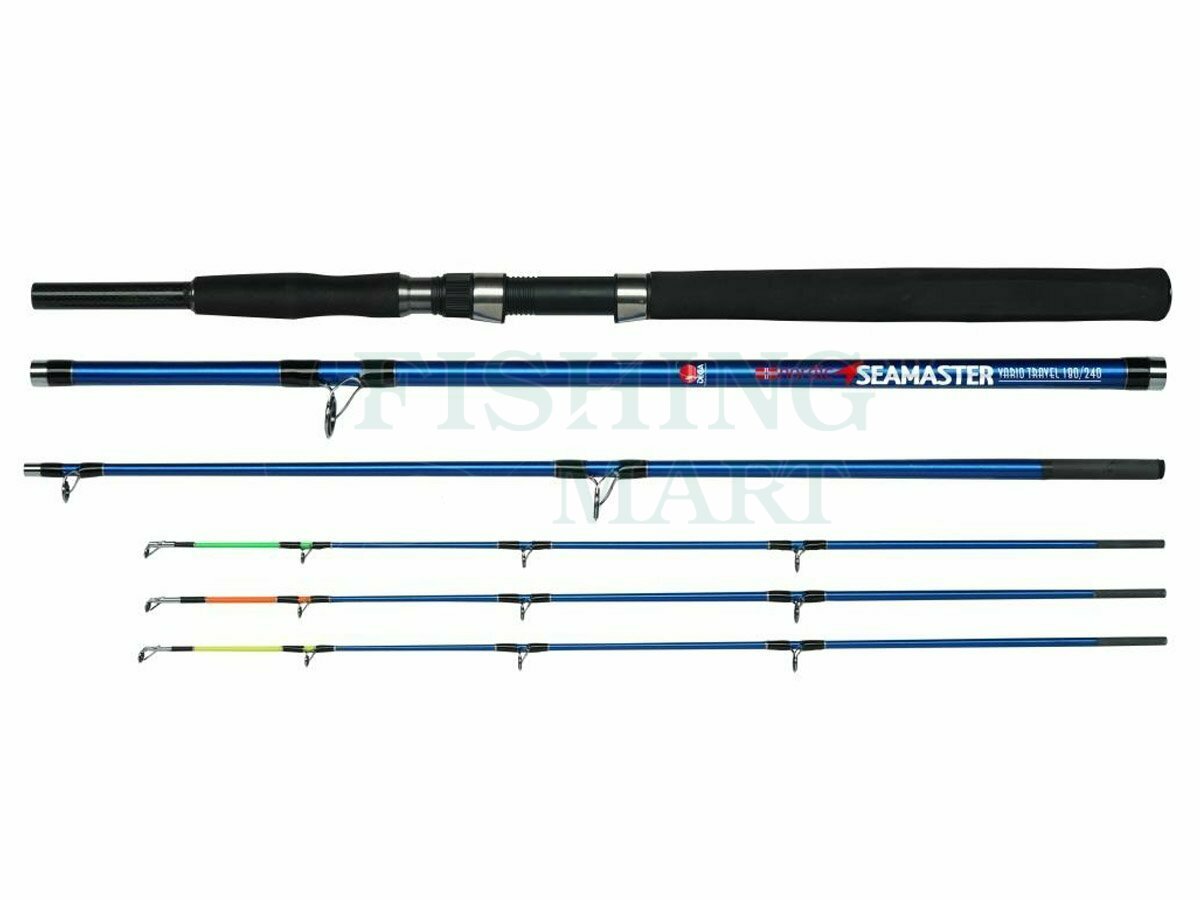 "4-section rod - fits in most travel cases The ""Nordic SEAMASTER Vario Travel"" can be used in two different lengths (1,80 m and 2,40 m). The B section can be left out, thus shortening the rod. The stabile, robust yet light Carbon-Blank makes this rod a real allrounder, be it in Norway or in Iceland - able to handle even the largest of predatory fish. The three different fiberglass tips can be switched out depending on the type of bait, weight and actual angling conditions. - Incl. 3 fiberglass tips - High composite slip-free - EVA handle - Sturdy guides + reel holder - Small transport size"