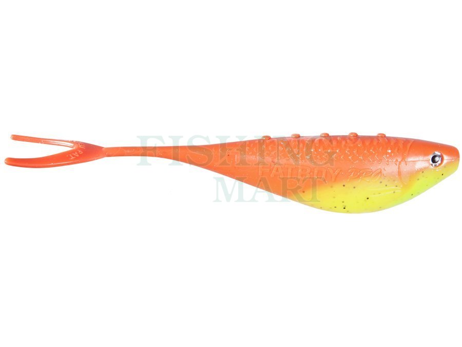 Soft baits Dragon Fatboy Pro 15cm - chartreuse/orange fluo/black glitter/silver glitter