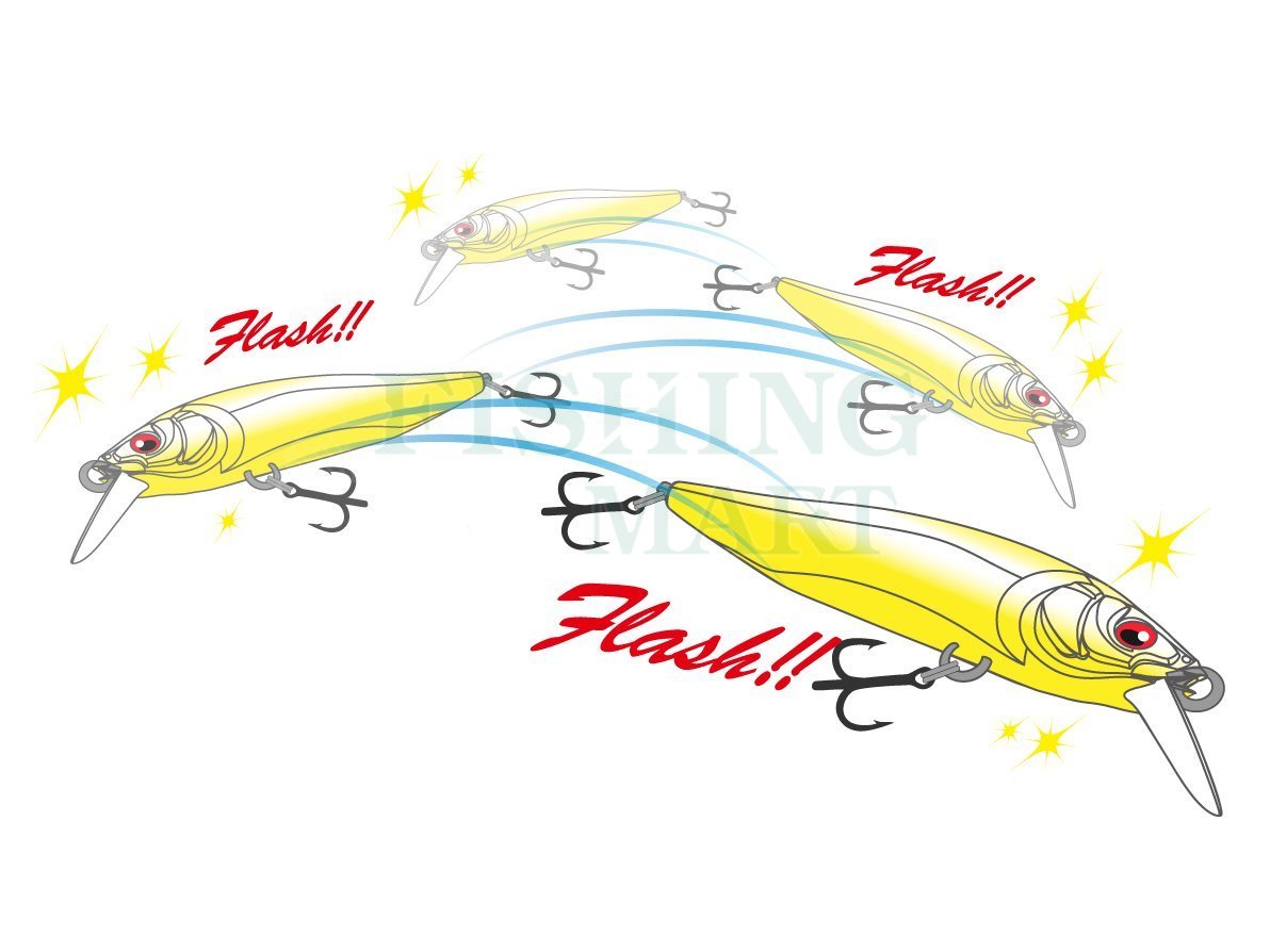 -> When jerked, its sharp, dynamic darting action and flicker-flash act as a feeding trap to switch on the predatory instincts of target fish.