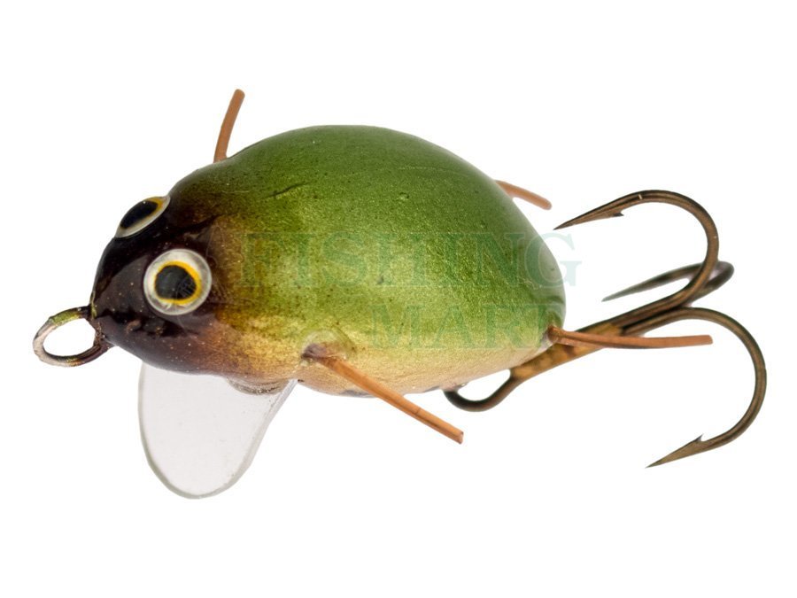 The shape and colour faithfully imitate a golden ground beetle. Intended for predators in all waters. Attacked by the ide, trout, pike, perch, chub and barbel. Lures Wob-art Biegacz złocisty (Golden ground Beetle) - Use especially near forests and shrubs. It can be used upstream and downstream.