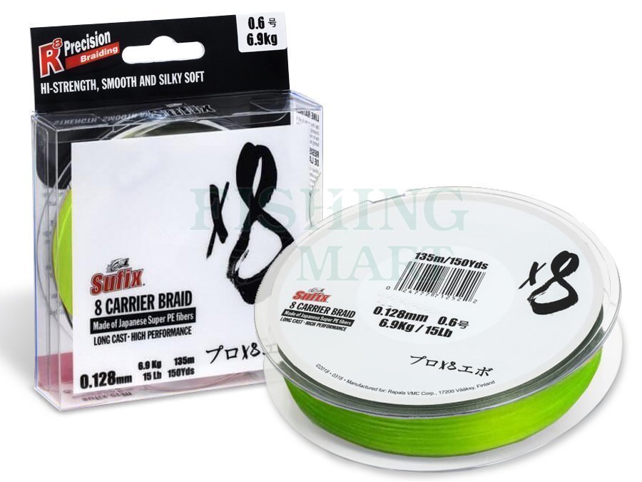 Braided line Sufix X8 Braid Neon Chartreuse 135m 0.148mm