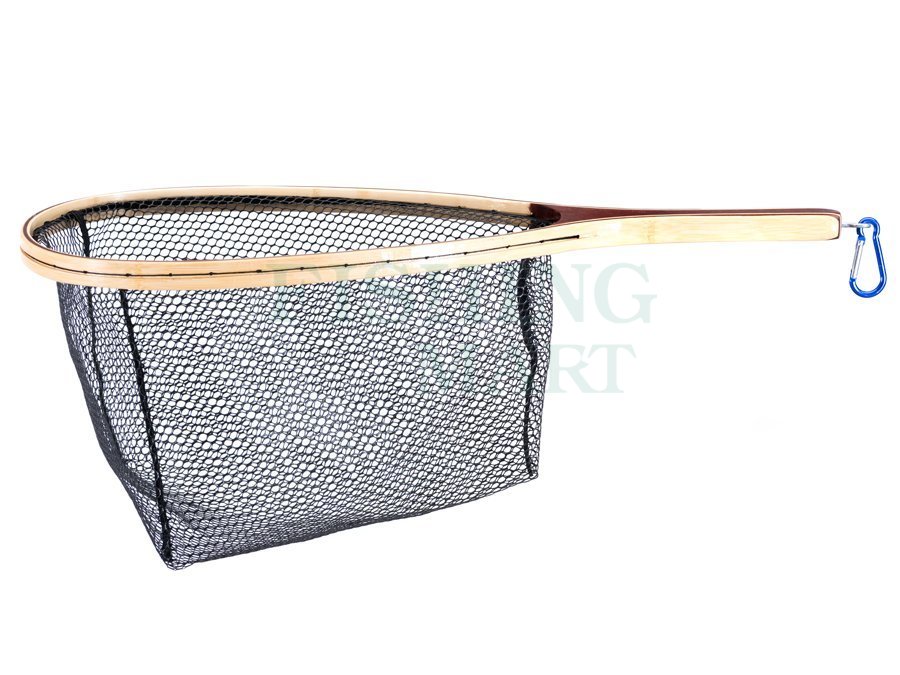 Klasyczne, drewniane podbieraki pstrągowe. Model PL-TRU101 z gumowaną siatką i mniejszą średnicą oczka. Głębokość – 36cm Długość całkowita z rączką -59cm Długość i szerokość kosza -38cm na 28cm Siatka gumowana ,średnica oczka ok.5mm